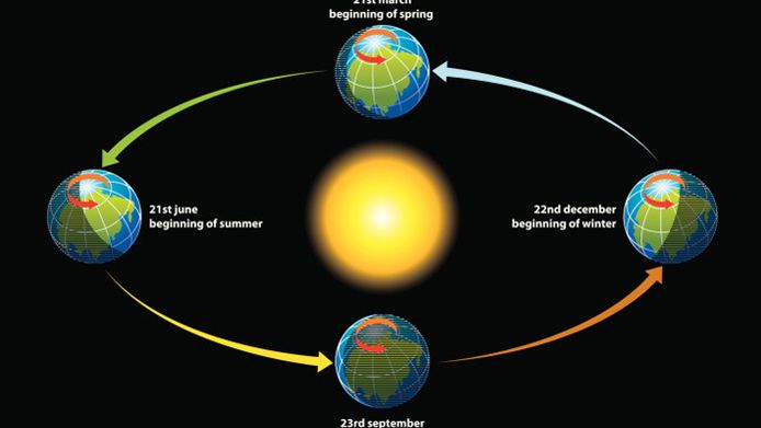Toch draait de Zon dus wel om zijn eigen as. Die snelheid heeft alleen betekenis voor een waarnemer die zelf buiten die draaiing van de aarde staat maar alles wat zich op aarde bevindt. De aarde draait in één jaar en zes uur om de zon. De aarde draait heel traag want ze heeft 24 uur nodig om slechts 1 omwenteling te doen om haar as.